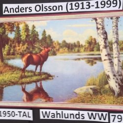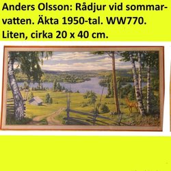 Anders Olsson: Rådjur vid sommarvatten. 1950t. Pappersbonad.21x39c