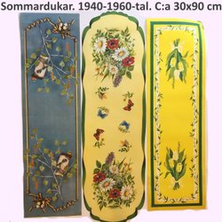 Tre SOMMAR-dukar / löpare. Äkta 1940-60-tal. Pappersbonad. ca 30x90cm. S1