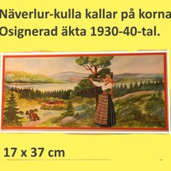 Näverlurflicka kallar hem korna. 1930-40tal. Liten pappersbonad 17x37c