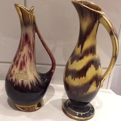 2 st Eleganta Hänkelvaser Bay Keramik Tyskland Flytande Glasyr 50-tal