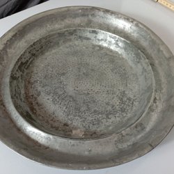 Stor 33cm tennskål, tennfat, 1700tal, med inskription