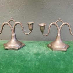 1 par äldre två armade tenn ljusstakar