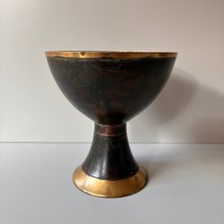 Bägare / skål på fot, blank och patinerad mässing / brons, märkt MK, 1900-tal
