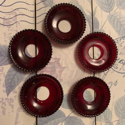 RETRO/ 5 ST VACKRA LJUSMANSCHETTER I RÖTTGLAS MED VÅGIG KANT/ JULPYNT