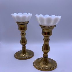 Par mässingspläterade ljusstakar