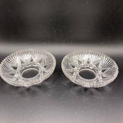 ANTIK/ 2 st äldre och sällsynta ljusmanschetter i glas med vågig guldkant