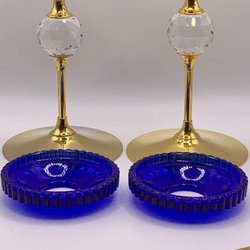 RETRO/ 2 ST Blå LJUSMANSCHETTER I GLAS MED VACKRA DETALJER