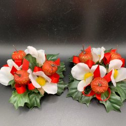 RETRO/ 2 ST Ljusmanschetter med vita blommor , röda äpplen och gröna blad