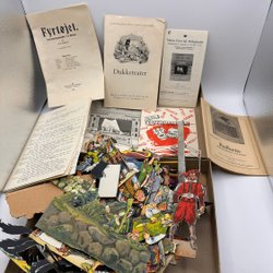 Antik dockteater Figurer, modeller, kulisser med mera.