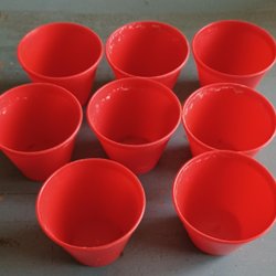 Parti äldre röda julgranskulor i plast , 1900-tal , Julgranspynt , Julpynt
