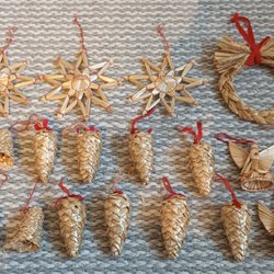 Julpynt julgranspynt i halm, halmslöjd, änglar, klockor, kottar mm