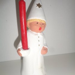 Lucia är en stor tradition i juletider, en dag som hyllar ljuset och välkomnar julen. Med olika pynt och tillbehör kan du enkelt komma i rätt stämning. Här på Tradera kan du både köpa och sälja olika pynt på temat Lucia. Bland annonserna hittar du ljusstakar, dekorationer i porslin, tillbehör till barnens Luciatåg och mycket mer.