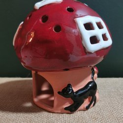 Ljuslykta i keramik , Svamphus , Tomte & katt, Gabriel Keramik , 1900-tal