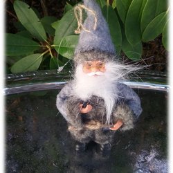 Grå vätte tomte gårdstomte att hänga upp i luvan beskyddare Fint skick