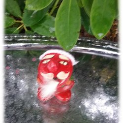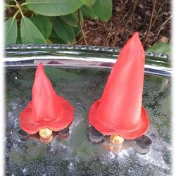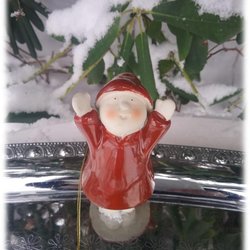 Paret tomtar i keramik med jätte mössor signering under ena CHARM
