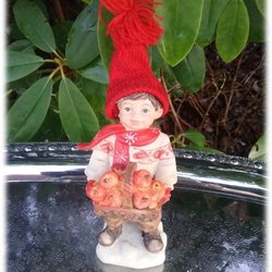Tomtepojke tomtebarn med äppelkorg design Kayene Fint skick