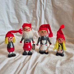 Retro tomtefamilj i trä - 4 st