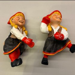 Två söta trätomtar till jul