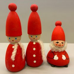 Tre retro söta tomtefigurer Design Karen Kjeargaar
