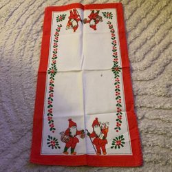 Bordsduk/ julduk broderad, tomtar, 74 cm x 73 cm