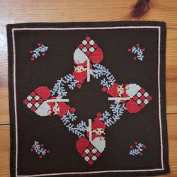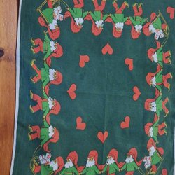 Bordsduk/ julduk broderad, tomtar, 74 cm x 73 cm