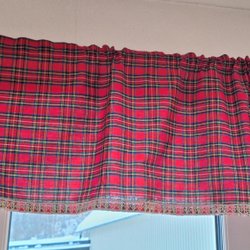 Julgardin Vävd rutig gardinkappa med spets 186 cm x 33,5 cm