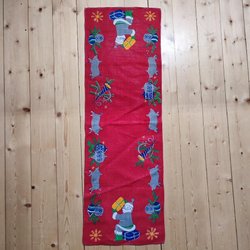 Handstickad julröd duk 73 cm x 35 cm