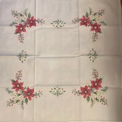Julduk med Julstjärnor Julrosor Spets Handbroderad Duk