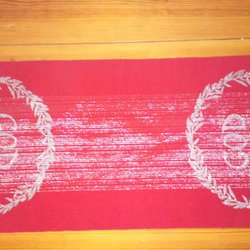 Handstickad julröd duk 73 cm x 35 cm