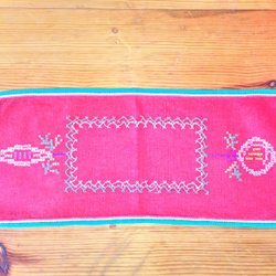Julduk:handbroderad röd duk 53 cm x 21 cm