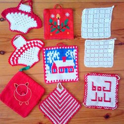 Tre grytlappar med julmotiv
