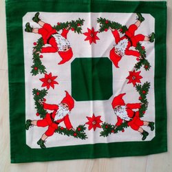 Vintage - Tyg med Tomtar - Retro - duk julduk Tomte