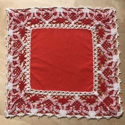 Liten röd duk med bred spets