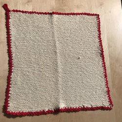 Liten röd virkad duk