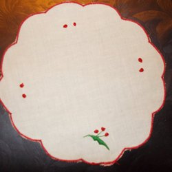 Handbroderad liten röd julduk