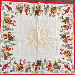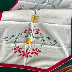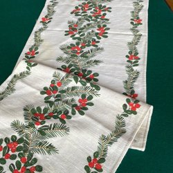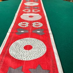 Vintage femtiotal- liten löpare i linne med julens attribut