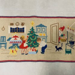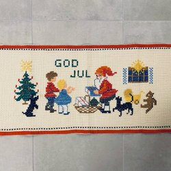 Retro broderad julbonad 50-tal 60-tal korsstygn tomte handbroderad