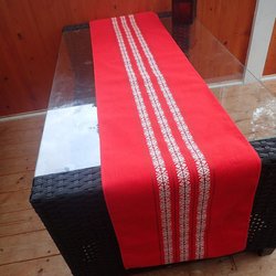 Röd bordslöpare med mönster