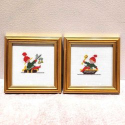 Framed Christmas Cross Stitch – Lot of 2 – 15.5 cm Gold Frames