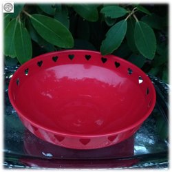 Julskål i lackerad plåt med utskurna hjärtan Kan vara Ystad Metall? vintage fint