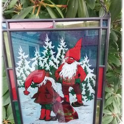 Stämningsfull tomtetavla glas mosaik upphängningsbar i kedja vintage Fint skick