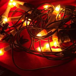 Olika julsnören som inte använts. Bl a röd, grön, blå, gul, lila, silver.