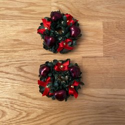 2 fina ljusmanschetter till jul. Julstjärnor, blad och band.
