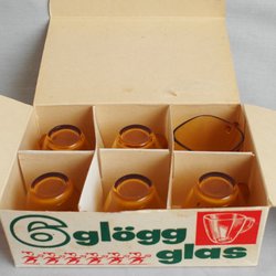 6 Glögg muggar i glas med julmotiv märkta France jul