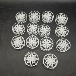 14 st "glorior", dekorationer till elljus. Vita metall. Ø 4,5 cm