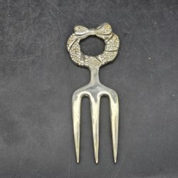 Skinkgaffel med ett dekorativt handtag i form av en krans med en rosett.