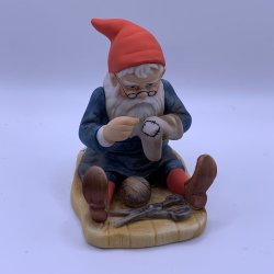 VINTAGE/ Jenny Nyström Tomte som sitterr och sy / STÄMPLAD & SIGNERAD