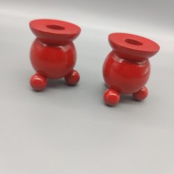 2 kulljusstakar i trä – röda - klotljustake - Retro