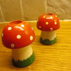 + - 2 st. Äldre trä svampljusstake - Mycket fint skick - +