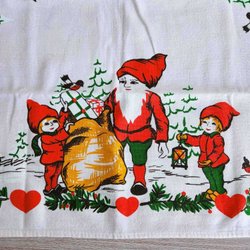 Äldre Paradhandduk jul, broderade tomtar som lagar gröt